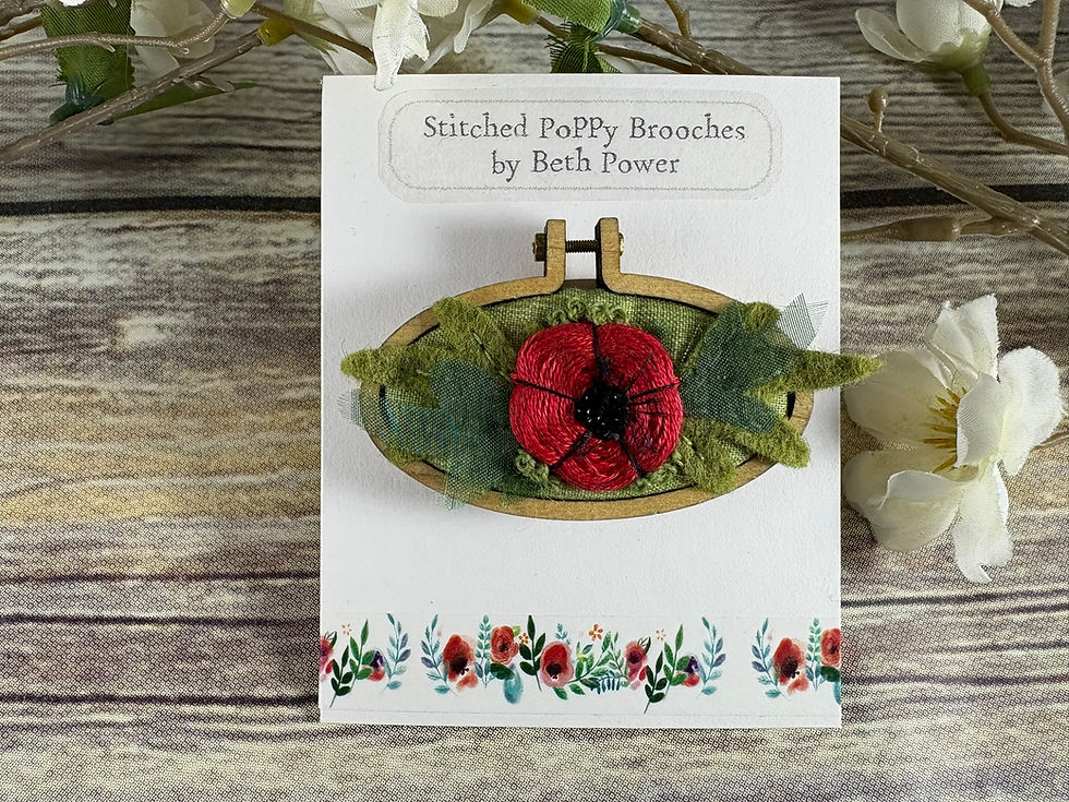 Hand Embroidered Poppy Brooch Large Oval